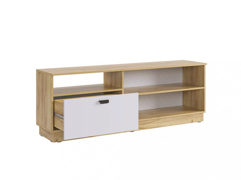 Состоит из: тумбы с дверями, выдвижного ящика и открытой секции.
