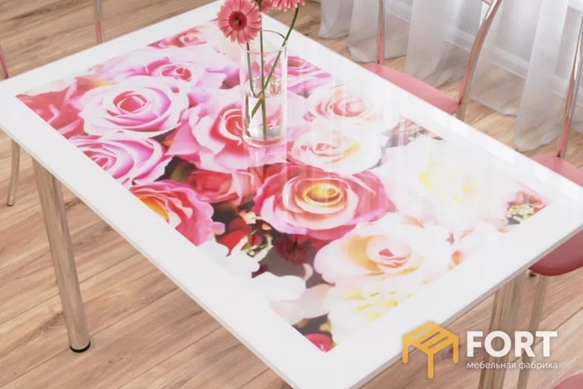 Цвет:Розовый букет/ЛДСП белый, Роуз/ЛДСП белый