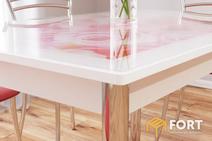 Материал столешницы: стекло с тканевой вставкой.