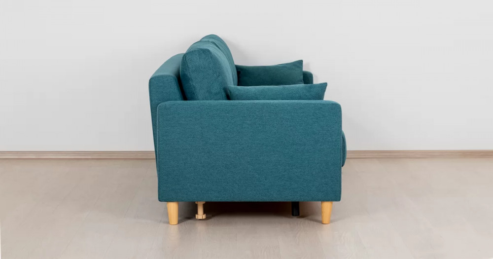 Дилан Диван-кровать арт. ТД 422Габаритысложенный (Д x Г х В, мм): 2170 x 960 x 880разложенный (Д x Г х В, мм): 2170 x 1370 x 620спальное место (Д x Ш, мм): 1910 x 1370высота посадки (мм): 460глубина сиденья (мм): 570высота спинки (мм): 420высота подлкотника от сиденья (мм): 160максимально допустимая нагрузка: 80 кг на одно посадочное место, 100 кг на одно спальное местоМеханизм трансформацииЕврокнижка с механизмом раскладки «тик-так»Бельевой ящикестьс перегородкой по центру (2 отделения)размер отделения (Д x Ш, мм):  786 x 688 x 120Материалыосновная ткань: Лаунж (шенилл) / Сага (рогожка)выполняется в тканях: Сага океан (темно-зеленый)каркас: фанера