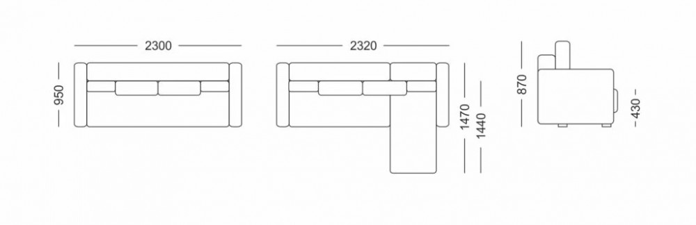 2300х950х870 мм