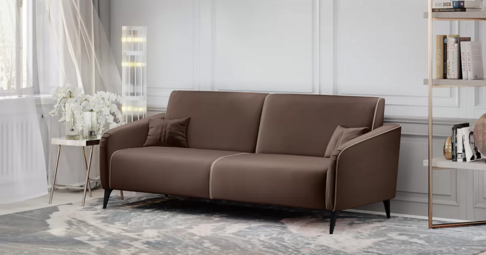 Габаритысложенный (Д x Г х В, мм): -2210 x 910 x 860разложенный (Д x Г х В, мм): -2210 x 1130 x 690спальное место (Д x Ш, мм): -1920 x 1130высота посадки (мм): -460глубина сиденья (мм): -590высота спинки (мм): -450высота подлокотника от сиденья (мм): -150-220максимально допустимая нагрузка: -80 кг на 1 посадочное местоМеханизм трансформации-КнижкаБельевой ящик-есть с перегородкой по центру (2 отделения)размер отделения (Д x Ш, мм): 740 x 885 x 885Варианты исполнения-5 артикуловсочетание тканей только как на фотоМатериалыосновная ткань: -Velutto (велюр)выполняется в тканях: Velutto 36 (шоколадный)/Velutto 08 (светлый кварцевый серый)каркас: фанера деревянный брус ДСП ДВПдекоративные подушки, шт: -2наполнитель подушек: -крошка ППУ и полиэфирное волокно «шарики»материал опор: металлцвет опор: черныйвысота опор (мм): 165ДекорСпинка и сиденье разделяются пополам двойным кантом по центру и одинарным по краям сидения, для придания одной единой формы. Подлокотники с изгибом на лицевой стороне и мягкими закругленным углом со складками, с выраженным контрастным ровным кантом по внешнему контуру изделия и изогнутой линией канта.Назначениев гостиную в молодежную в гостевую комнату в кабинет в офисТребуется ли сборка-даУпаковкаколичество коробок, шт: 2общий вес с упаковкой, кг: 58,1