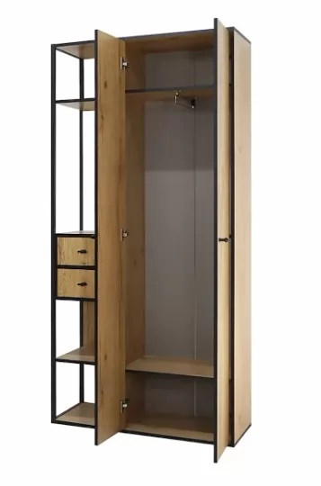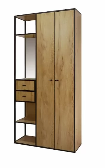 Прихожая «Берген 5» состоит из 2-х створчатого шкафа с выкатной штангой, атакже двух выкатных ящиков и зеркала с фацетом.