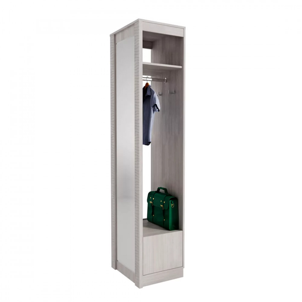 -модель состоит из открытой зоны с хромированной штангой и крючками для одежды,