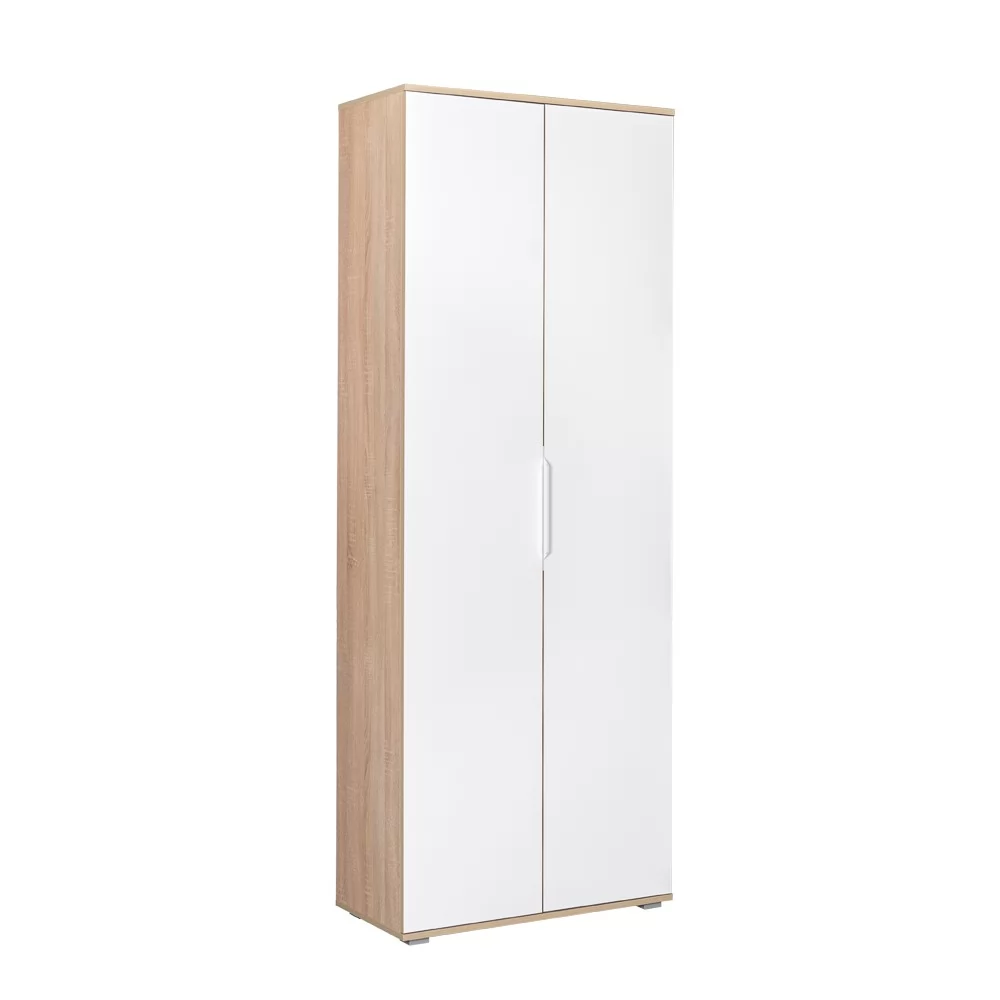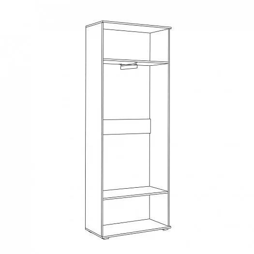 Шкаф для одежды "Куба" с двумя распашными фасадами комплектуется полками вверху и внизу и выдвижной штангой для вешалок.