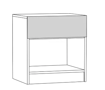 Прикроватная тумба "Ливерпуль" №08.146 включает в себя выдвижной ящик и объемную нишу за распашной дверцей.