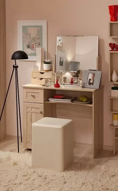 6 (гостиная) Комод — яркая деталь классического интерьера. В небольшой спальне он может выполнять не только свою основную роль, но и в сочетании с модулем 55 Трюмо с ящиками стать альтернативой туалетного столика. Поворотное зеркало позволит нанести макияж, а ящички – сэкономить место и разложить аксессуары как в шкатулке.
